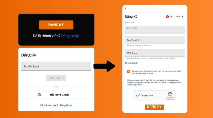 Bước 1: Vào trang chủ, nhấp vào nút “Đăng Ký” nổi bật ngay trên giao diện
